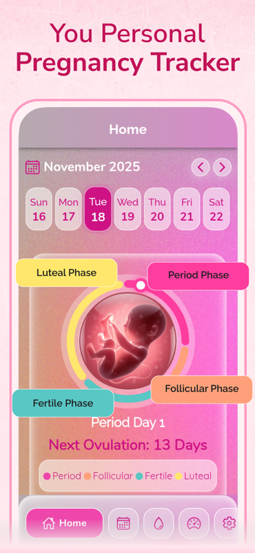 Effortlessly monitor your menstrual cycles, track pregnancy progress, and gain
